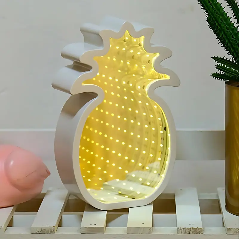 ? Su diseño de ananá espejado con efecto infinito en blanco crea un ambiente moderno, fresco y divertido. Perfecta para habitaciones, livings o para sorprender con un regalo único ?.